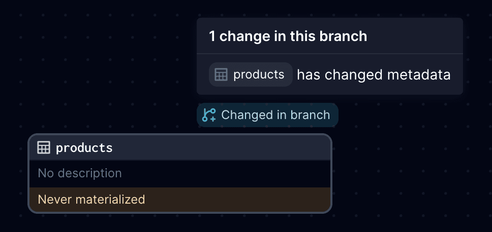 Branch Deployments Change Tracking makes it eaiser for you and your team to identify how changes in a pull request will impact data assets. By the end of this guide, you'll understand how Change Tracking works and what types of asset changes can be detected.